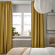 MAJGULL room darkening curtains in beige-yellow have a chic, butter-soft texture. The pleats fall beautifully and the fabric offers privacy during the day. Multi-way header for different hanging options.