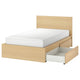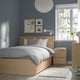 A clean design with solid wood veneer. Place the bed freestanding or with the headboard against a wall. You also get spacious storage boxes that roll out smoothly on castors.
