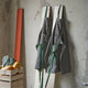 - Handwoven apron with black and white stripes where the discreet hand-embroidered pocket sides in yellow and pink echo the caterpillar motif on MÄVINN cushion cover.
