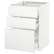 METOD kitchen system gives you endless possibilities to design your dream kitchen. Paired with VOXTORP fronts in matte white with integrated handles, you get a modern and minimalist expression.