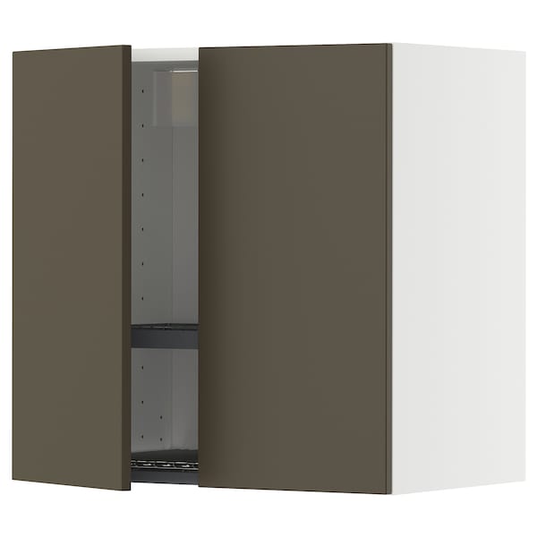 METOD wall cabinet w dish drainer/2 doors, white/Havstorp brown-beige, 60x60 cm