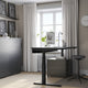 - Dual-motor desk with sturdy construction and high weight capacity secures a smooth transition between sitting and standing positions.