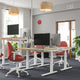 - Dual-motor desk with sturdy construction and high weight capacity secures a smooth transition between sitting and standing positions.
