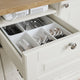 - 2 cabinets provide generous closed storage for larger items. 3 drawer boxes allow you to organize smaller items. The drawers have felt underneath to make them easier to open/close.