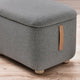 - The footstool has a softly rounded design with clean lines and well-thought-out details like leather handles and wooden legs.