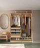 This wardrobe has got space for everything - from your hanging and folded clothes, to accessories and shoes. Glass organisers helps you with an easy overview and adds a stylish touch.