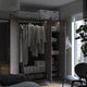 PAX wardrobe frame is easy to assemble, disassemble and reassemble without tools. The secret is a foldable construction that you open like a book – on the exact spot where you want to place your wardrobe.