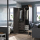 PAX wardrobe frame is easy to assemble, disassemble and reassemble without tools. The secret is a foldable construction that you open like a book – on the exact spot where you want to place your wardrobe.