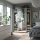 PAX wardrobe frame is easy to assemble, disassemble and reassemble without tools. The secret is a foldable construction that you open like a book – on the exact spot where you want to place your wardrobe.
