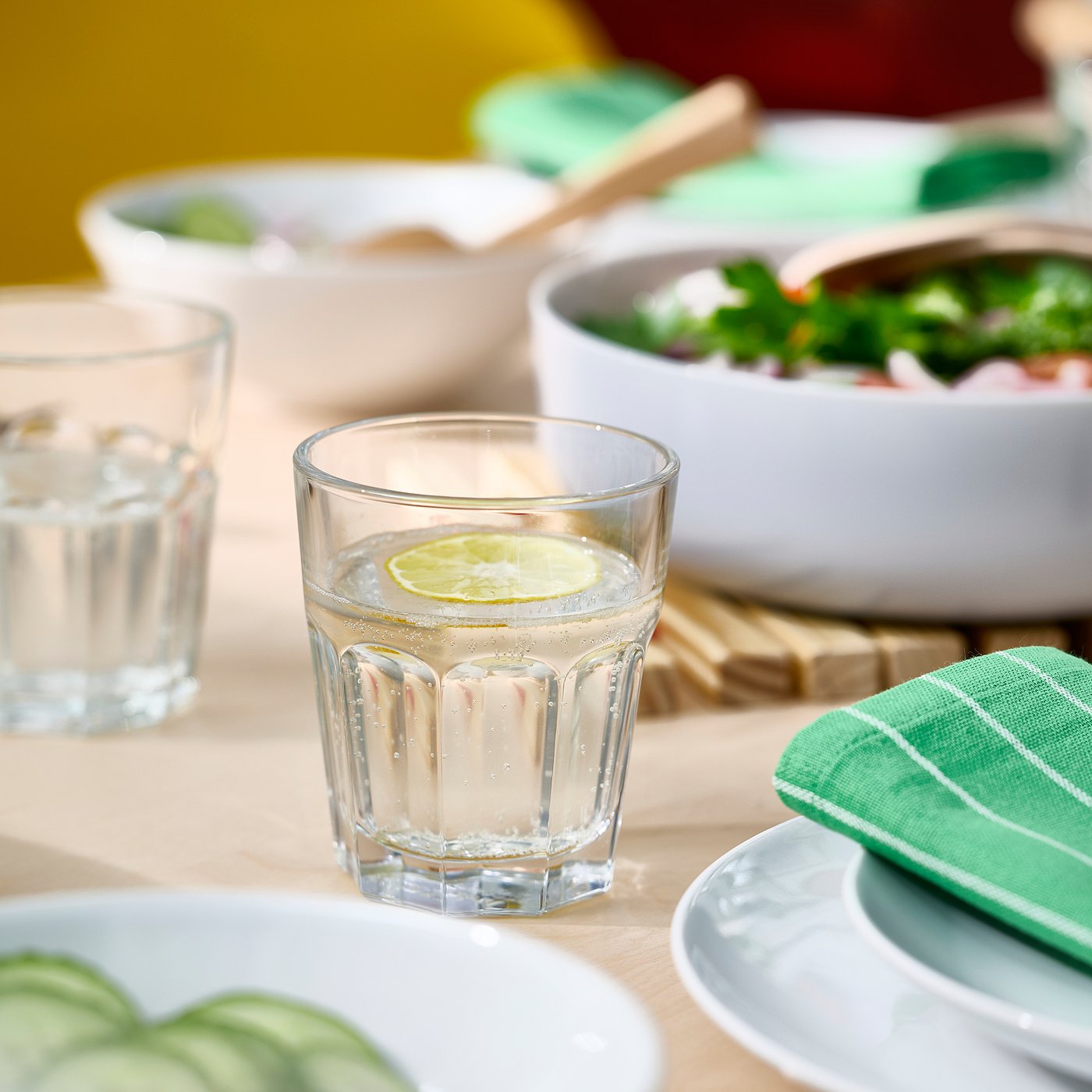 With their classic design and different sizes, POKAL glasses are sure to be favourites – great for water and soft drinks and can also hold warm beverages like coffee or tea. Made of tempered glass for added strength and durability.