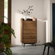 The RÅDMANSÖ series is inspired by mid-century design with sleek lines, great functionality and a warm walnut tone. This high chest of drawers has 5 generous drawers – and an open shelf on top for display.