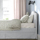 - The Klovsta fabric with a distinctive texture is made from at least 90 percent recycled polyester and the grey-white striped pattern gives the bed a vibrant expression.