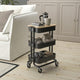 - The sturdy construction and four castors make it easy for you to move the trolley and use it wherever you like. It even fits in tight spaces because of its small size.