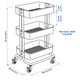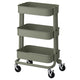 - RÅSKOG trolley comes in 2 sizes. This smaller size fits under most tables and desks helping to save on floor space.