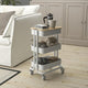 • The sturdy construction and four castors make it easy for you to move the trolley and use it wherever you like. It even fits in tight spaces because of its small size.