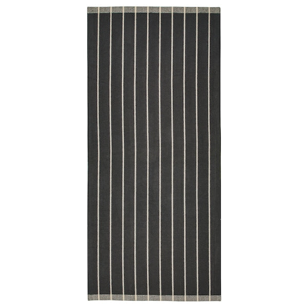 Foot-friendly cotton rug in grey with off-white stripe pattern. The rug is flatwoven and ideally sized for hallways and kitchens. Easy to vacuum and machine-washable so it will keep its fresh appearance.