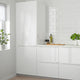 RINGHULT fronts with white, high gloss surface create a modern and spacious feel. They endure moisture and bumps, and stains wipe off easily so your kitchen will always be shiny and clean.