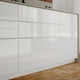 RINGHULT fronts with white, high gloss surface create a modern and spacious feel. They endure moisture and bumps, and stains wipe off easily so your kitchen will always be shiny and clean.