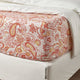 Fitted sheet with classic paisley pattern in fresh, contrasting nuances. The cotton/viscose blend has a fine sheen, feels soft against your skin and helps keep an even temperature all night.