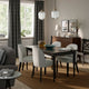 <div class="pip-product-details__container"><p class="pip-product-details__paragraph">A comfortable chair fully upholstered and covered with Tibbelby lining, a soft, slightly shiny, solution-dyed polyester fabric with a discreet herringbone pattern.</p><p class="pip-product-details__paragraph">The seat and back are padded with soft foam and covered with a durable yet comfortable fabric that makes your dining moments even more enjoyable.</p><p class="pip-product-details__paragraph">The padded seat distributes your body weight over the surface of the chair, reducing pressure on your pelvic bones.</p><p class="pip-product-details__paragraph">The chair's padded seat and back are one piece, which is joined to the frame with the tear tape.</p><p class="pip-product-details__paragraph">After a dinner party with friends, it's good to know that you can easily remove the chair cover and wash it in the washing machine.</p><p class="pip-product-details__paragraph">By airing or washing the cover regularly, you keep it fresh and clean and protect your space from dust and dirt.</p><p class="pip-product-details__paragraph">Sturdy solid wood structure.</p><p class="pip-product-details__paragraph">It coordinates with other furniture in the ROSENTORP series, so you can create the combination you like.</p><div><span class="pip-product-details__header" role="none">Designer</span><p class="pip-product-details__label" role="none">Francis Cayouette</p></div></div>
