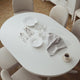- The oval shape creates a more intimate and engaging dining experience, similar to round tables, but with more seating capacity.