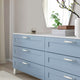 - The drawer front with its stylish and simple design is covered with a smooth foil in blue that gives it a traditional expression.