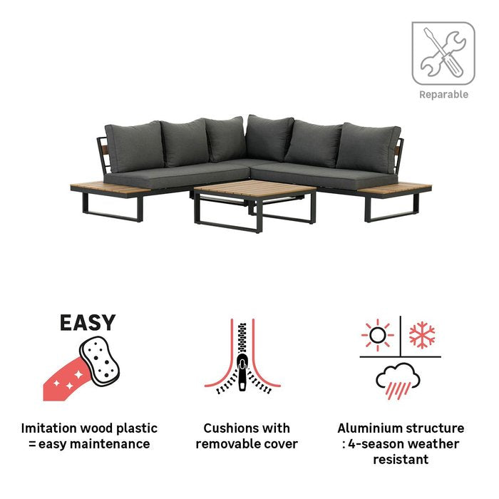 SET AD ANGOLO CLARA 5 POSTI CON TAVOLINO