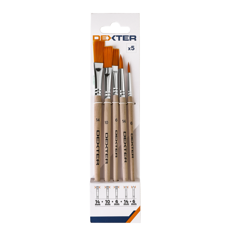 Set of 5 touch-up brushes: 3 flat and 2 pointed (Dexter)