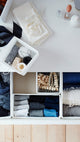 These small boxes bring order to your chaos helping you to sort socks, lingerie, and accessories. Use one or a few in each drawer depending on your needs. You can use them in the bathroom too.