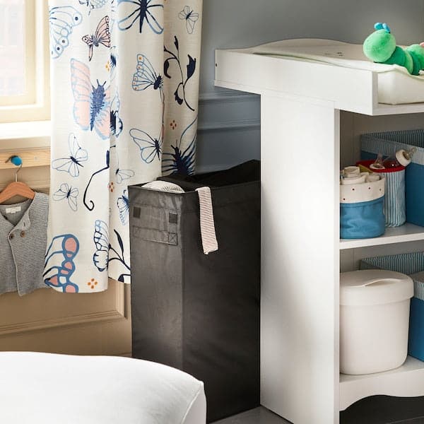 Between the changing table’s shelf and the wall there is a space where you can put a laundry basket or something else you want hidden. The space has a depth of 29 cm and is 80 cm high.