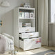 This bookcase has lots of storage in a small space – from baby years to teens. On the open shelves you can display and have things close at hand, and in the drawers there is room for things of all sizes.