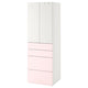 SMÅSTAD / PLATSA wardrobe, white pale pink/with 4 drawers, 60x42x181 cm
