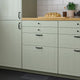 STENSUND fronts in green with grooved panels offer a touch of country living with a harmonious and crafted look. The lacquered surface resists stains and moisture and is easy to wipe clean.