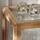 - The glass-door cabinet stays in place on uneven floors because it has adjustable feet.