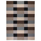 The brown check pattern creates a bold and graphic statement. Handwoven in wool by skilled craftspeople makes each rug one of a kind. The flat weave is perfect for dining and living areas.