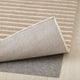 Beige with white stripes or white with beige stripes? It depends on the angle from which you look at this hand-tufted wool rug. An enchanting feature that is sure to amaze your guests.