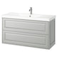 TÄNNFORSEN bathroom furniture expresses classic elegance with bevelled edges that add a crafted look. This combo has 2 spacious drawers and room on the wash-basin for toothbrushes and soap.