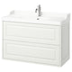 TÄNNFORSEN bathroom furniture expresses classic elegance with bevelled edges that add a crafted look. This combo has 2 spacious drawers and raised backsplash to reinforce the traditional appeal.