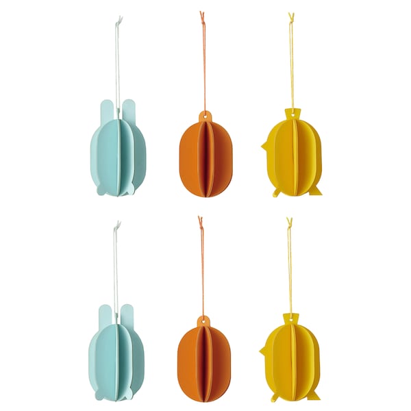 TJÄRLEK hanging decoration, set of 6, multicolour