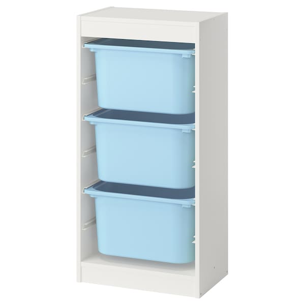 TROFAST storage combination with boxes, white/light blue, 46x30x94 cm