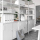 - The back wall of the cabinet can be mounted to the back or middle of the cabinet if you want the cabinet to be accessible from both sides, with sliding doors on one side and open shelves on the other.