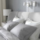 TUFJORD will make you long for bedtime. The headboard’s embracing curves help you to unwind, and make lazy mornings spent in bed even cosier. And the soft, textured upholstery enhances the comfy feel.
