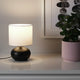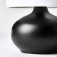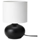 Small table lamp in classic black and white with a stoneware base and topped with a textile lampshade that spreads an even and decorative light. Perfect to put in a window or on a chest of drawers.