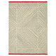 Hand tufted lines that put together form a diamond pattern that finishes at either end with a bold red edge – eye-catching, yet easy to place. The low wool pile is sound-dampening and comfy to walk on.