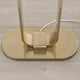 Shaped like a shiny tuning fork topped with a slim and oval shade, this sturdy floor lamp catches the eye and spreads a soft, decorative light wherever you choose to place it.