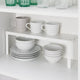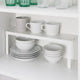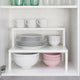 - Perfect to place on a shelf to create space for storing glasses, bowls and spice jars.