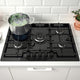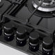 A 5-zone gas hob with a bold look for the aspiring chef. Electronic ignition and a sleek, easy-clean glass surface. No wobbling pots or pans thanks to the sturdy cast iron supports that make cooking safer.