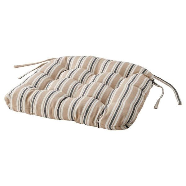 With comfy VATTENMOTT chair cushion, you are in for a soft landing. Identical beige stripe pattern on both sides so you can flip the cushion over for even wear. Easy to coordinate.