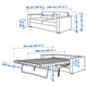 Bed height: 53 cmHeight including back cushions: 83 cmBack height: 68 cmWidth: 190 cmDepth: 98 cmTotal depth, open: 241 cmSeat depth: 55 cmSeat height: 48 cmBed width: 140 cmBed length: 200 cmMattress thickness: 12 cm