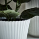The pleated white steel gives the VINTERFINT pots, available in two sizes, a soft and inviting appearance while also being durable. Easy to combine with other decorations depending on the theme.
